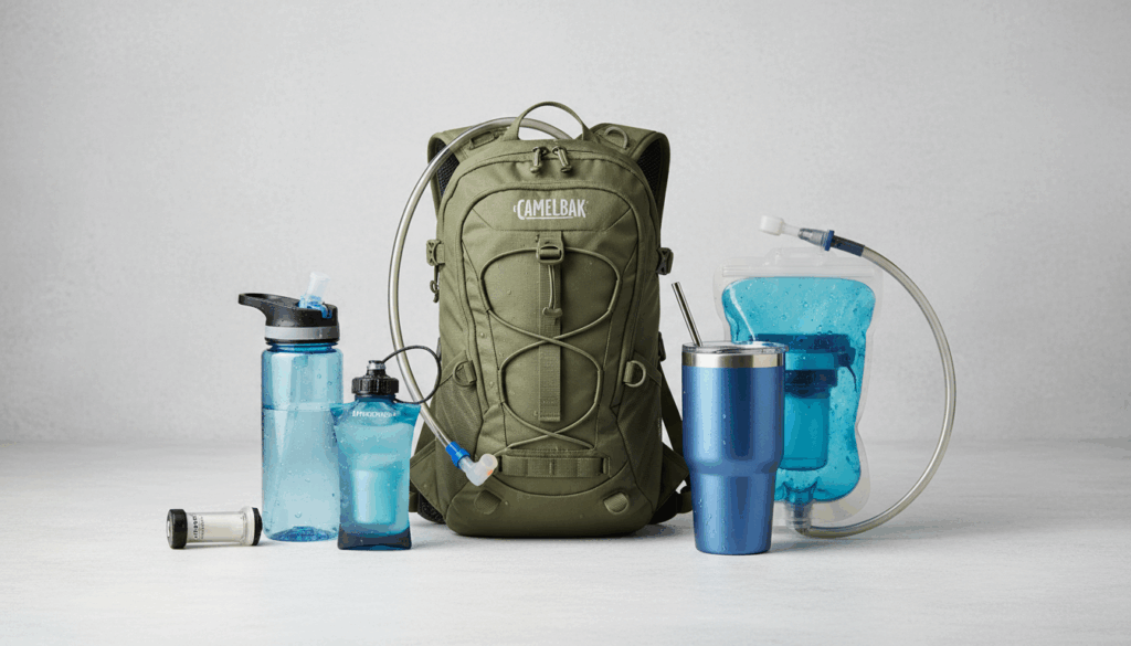 Når du vælger, bør du overveje kapacitet (typisk 0,5–1,5 L), vægt, materiale og om der er indbygget filtrering. Tænk også på rengøring, udskiftning af filtre og kompatibilitet med dit drikkesystem eller din rygsæk.