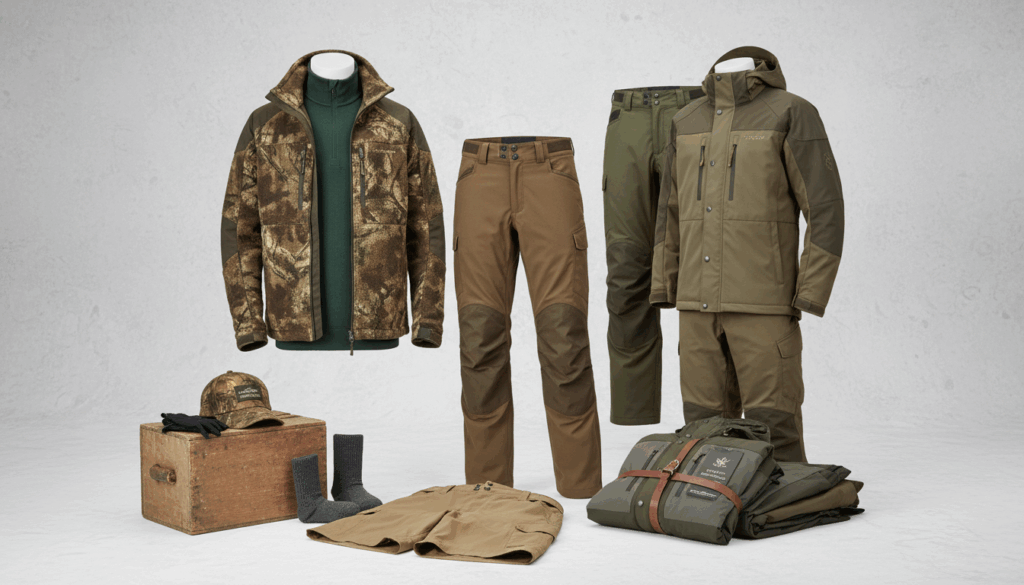 Udvalget omfatter herre-, dame- og unisex-snit, shorts som Northward og Matobo samt tilbehør som Merino-sokker og Windstopper-handsker. Camouflage-mønstre som Realtree EXCAPE og lag-på-lag-design gør Deerhunter-velegnet til jagt og friluftsliv. Nøglekriterier ved køb er materialer, vandtæthed og åndbarhed, 4-vejs stræk, holdbarhed, pasform og muligheden for lag-på-lag-udstyr. Sortimentet spænder fra lette sommershorts til varme vinterjakker og tætte regnjakker.