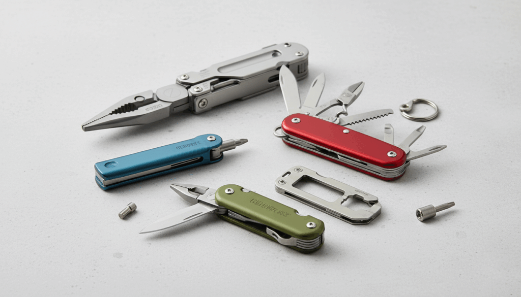 Variationerne spænder fra ultra-kompakte nøglekæde-versioner til fuld-size tang-modeller og specialiserede køkkenværktøjer som Compleat Tong. Vælg efter behov: vægt og størrelse for hverdagen, antal værktøjer for friluftslivet, og om der er lås på kniven for sikker brug. Materialer som rustfrit stål eller titanium påvirker holdbarhed og vedligeholdelse. Se udvalget hos Knivsalg.dk og Outmore.dk for inspiration.
