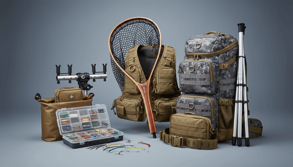 Fiskeri tilbehør samler de produkter, der gør fisketure nemmere, tryggere og mere behagelige. I denne kategori finder du veste til praktisk opbevaring af grej, solide stangholdere, net og kystnet til fangst og håndtering ved vandet samt opbevaringsløsninger som tackleboxe og tasker til vådt og tørt udstyr. Der er også tilbehør til bevægelse og transport som vadestave og modulære tilpasninger til tasker (Molle og lignende systemer), der holder grejet organiseret og lettilgængeligt, når du skifter mellem vand og land.