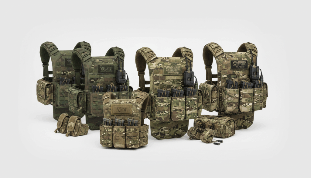 Inden for kategorien findes variationer som JPC i forskellige størrelser og farver samt Warrior Assault Systems RECON og DCS-DA 5.56MM modeller. Disse giver forskellige konfigurationsmuligheder og opbevaring. For yderligere inspiration kan du finde relevante produkter hos Wolf Tactical.