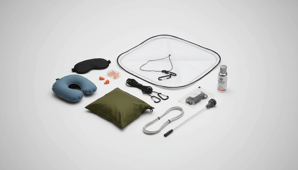 Typiske produkter inkluderer myggenet Single og Double, myggenet inkl. hængekit, opbevaringsposer og plejeprodukter som imprægnering samt mindre reparationssæt til tøj og udstyr. Variationerne giver fleksibilitet til forskellige senge og forhold. Tilbehør som rejsehovedpude og ørepropper kan forbedre roen om natten.